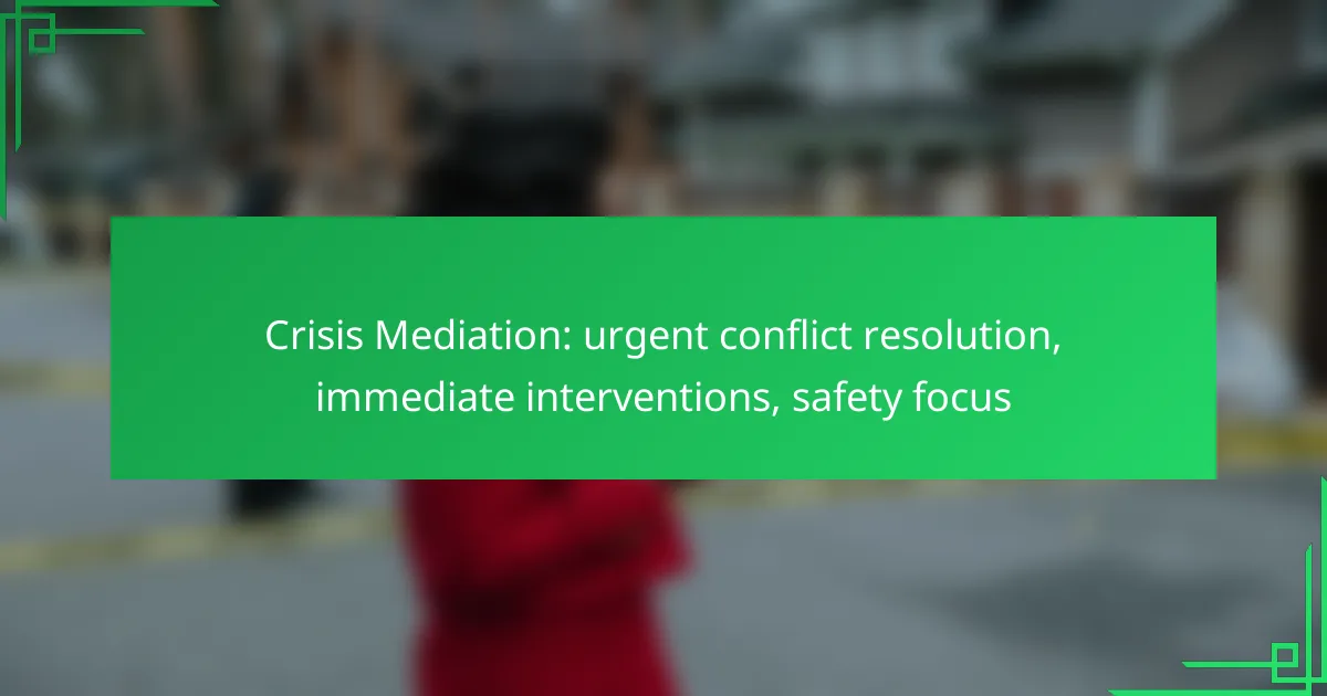 Immediate interventions for crisis mediation in Australia focus on rapid conflict resolution to ensure safety and stability. These interventions typically involve professional mediation services, emergency workshops, and accessible crisis hotlines to provide support during urgent situations.