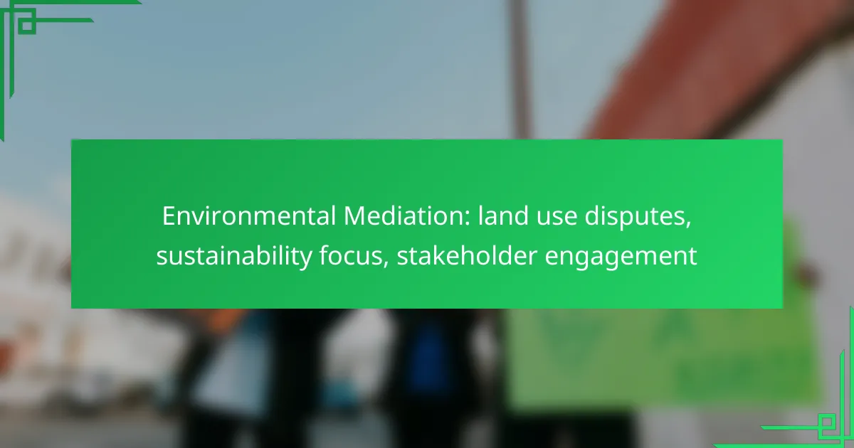 Environmental mediation serves as a vital tool for resolving land use disputes by fostering collaboration among diverse stakeholders. By emphasizing sustainability and encouraging open dialogue, this approach helps to identify mutually beneficial solutions that prioritize both environmental health and community interests.