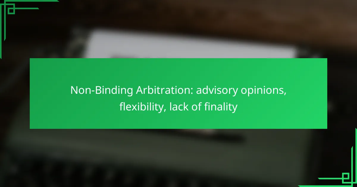 Non-binding arbitration provides a unique approach to dispute resolution, allowing parties to receive advisory opinions without the constraints of a binding decision. This process fosters flexibility, enabling participants to navigate their options while minimizing costs compared to traditional litigation. However, the lack of finality can result in prolonged negotiations and unresolved issues, highlighting both its advantages and limitations.