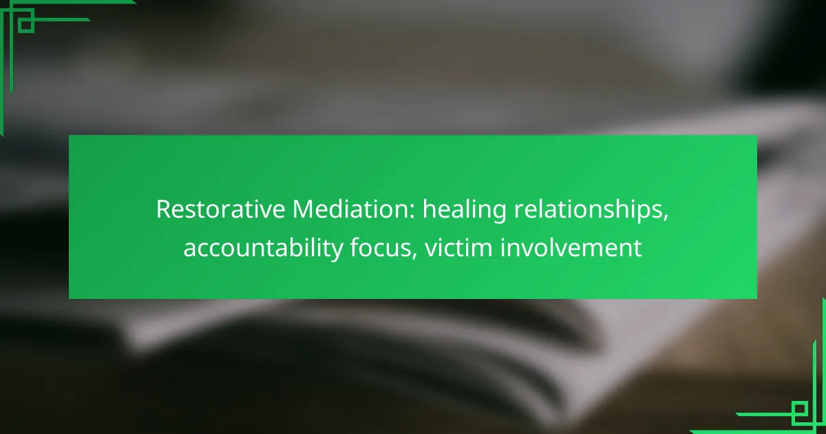Restorative mediation is a transformative approach that prioritizes healing relationships through open communication and accountability. By actively involving victims in the process, this method allows all parties to express their feelings and work towards mutual understanding, fostering a sense of ownership in the resolution. This focus on accountability encourages individuals to take responsibility for their actions, ultimately leading to more meaningful and constructive outcomes.